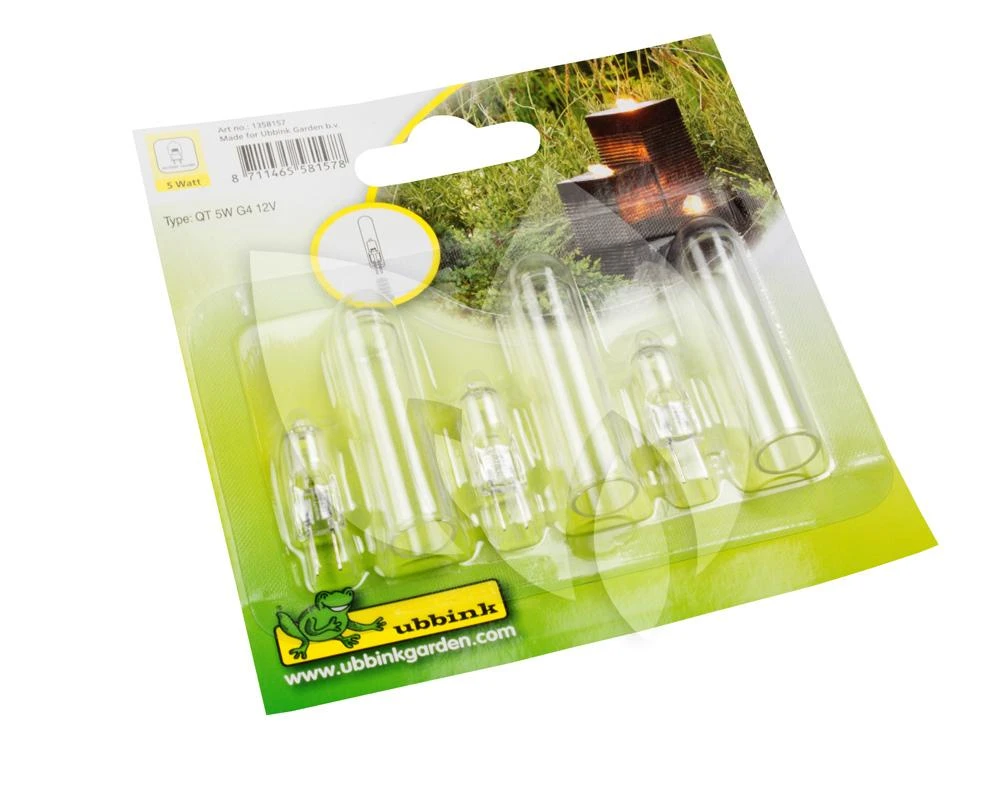 Set van 3 stuks halogeenlampjes 5W en 3 glazen kapjes voor MiniBright 3 x 5 Watt