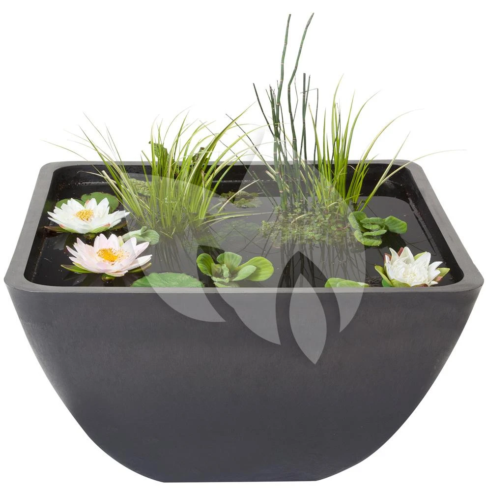 De Fountain Pond is gemaakt van licht materiaal, polystone, waardoor u de vijver moeiteloos kunt verplaatsen. De terrasvijver wordt geleverd met fonteinpomp en plantmand waarmee u de vijver kunt vullen. Een aanrader: moerasplanten maken de terrasvijver echt tot een sfeervol element in uw tuin of huis! Voor het houden van helder en algenvrij water zijn zuurstofplanten een goede optie. De terrasvijver is ook beschikbaar in een groter formaat en in een ronde uitvoering.